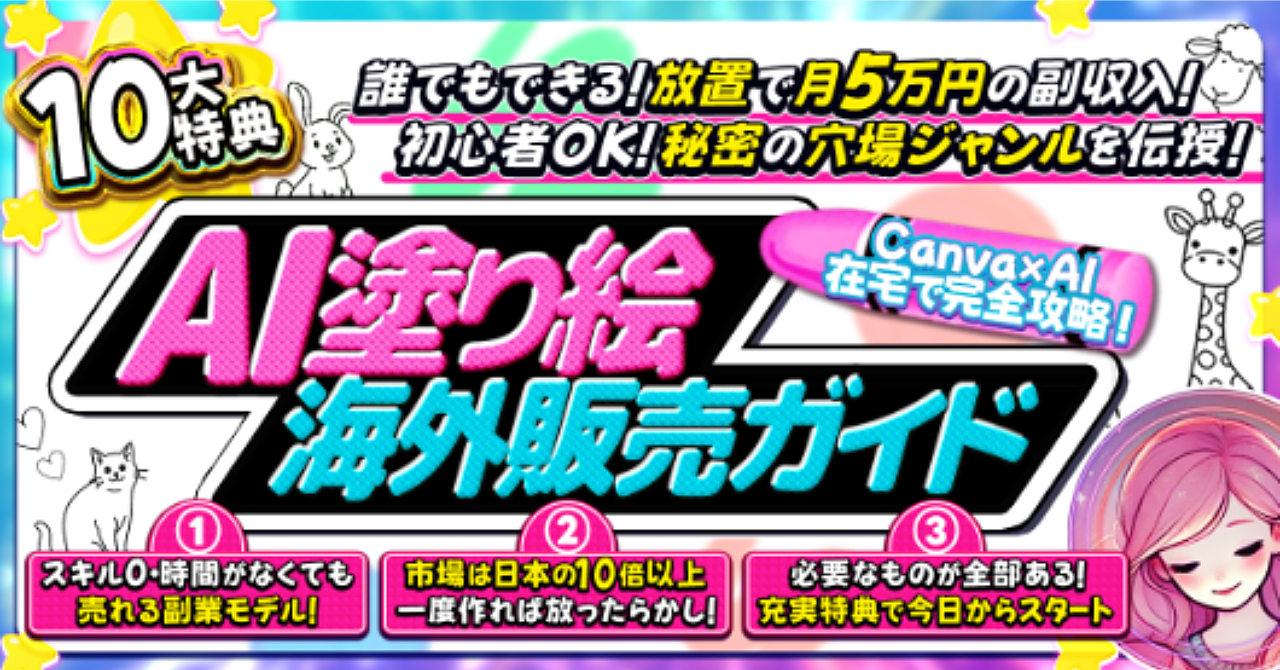 【スマホOK!初心者でも今日からできる特典付】AI塗り絵×海外販売ガイド【Canvaでポチっとするだけ!月5万お小遣い稼ぎ】