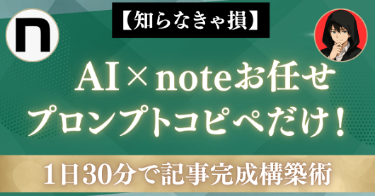 【知らなきゃ損】 AI×noteお任せプロンプトコピペだけ!1日30分で記事完成構築術