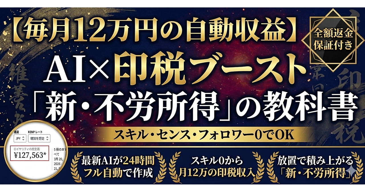 【毎月12万円の自動収益】AI×印税ブースト「新・不労所得」の教科書|スキル・センス・フォロワー0でOK