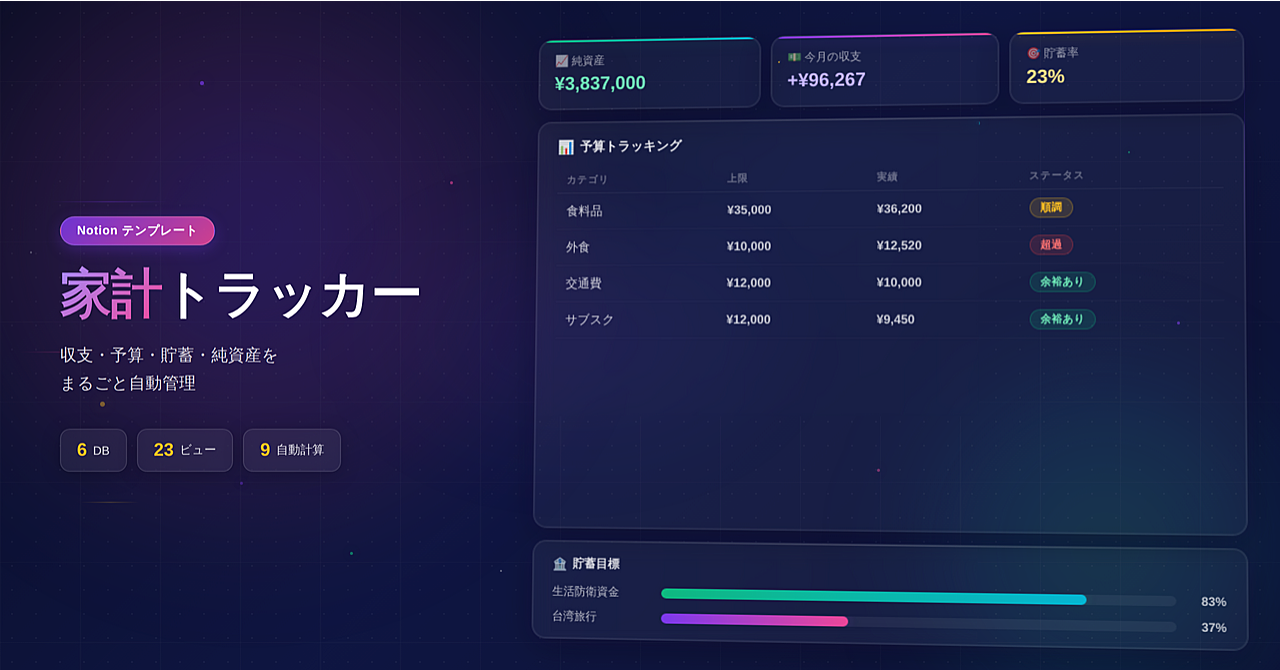 Notionで家計を丸ごと管理するテンプレを作った【6DB連携・自動計算・サンプルデータ付き】