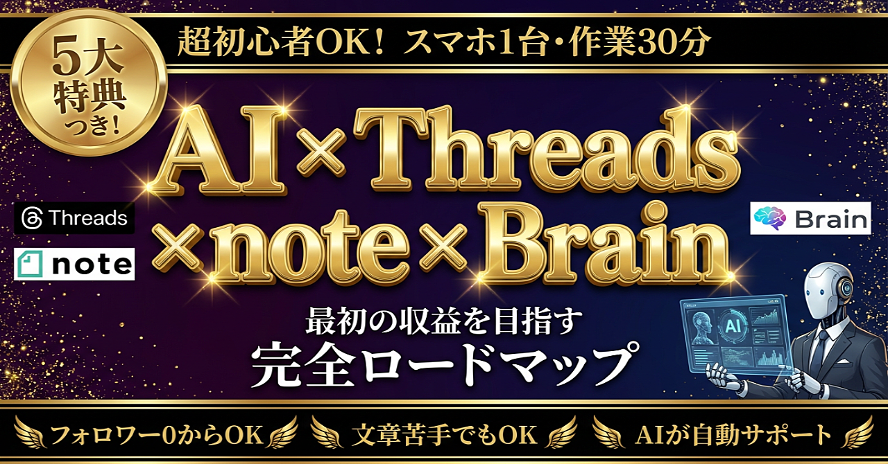 超初心者OK!最初の収益を目指す、 AI×Threads×note×Brain 完全ロードマップ
