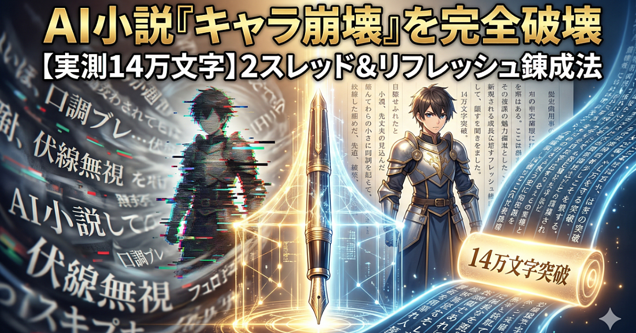【実測14万文字】AI小説の「キャラ崩壊」を完全克服する。2スレッド管理&コンテキスト補完で生み出す、無限ストーリー錬成フレームワーク