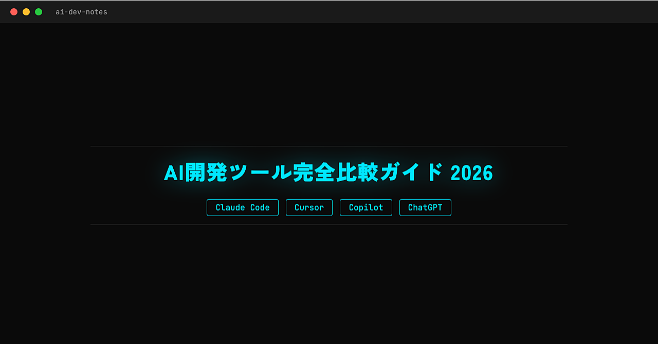 AI開発ツール完全比較ガイド 2026 - Claude Code / Cursor / Copilot / ChatGPT