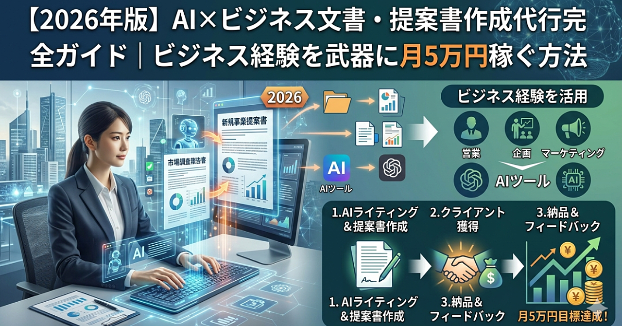 【2026年版】AI×ビジネス文書・提案書作成代行完全ガイド|ビジネス経験を武器に月5万円稼ぐ方法