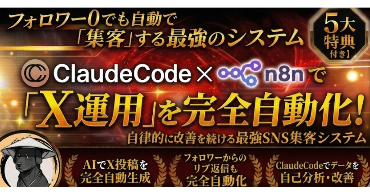 【5大特典付き】ClaudeCode × n8nで「X運用」を完全自動化!自律的に改善を続ける最強SNS集客システム