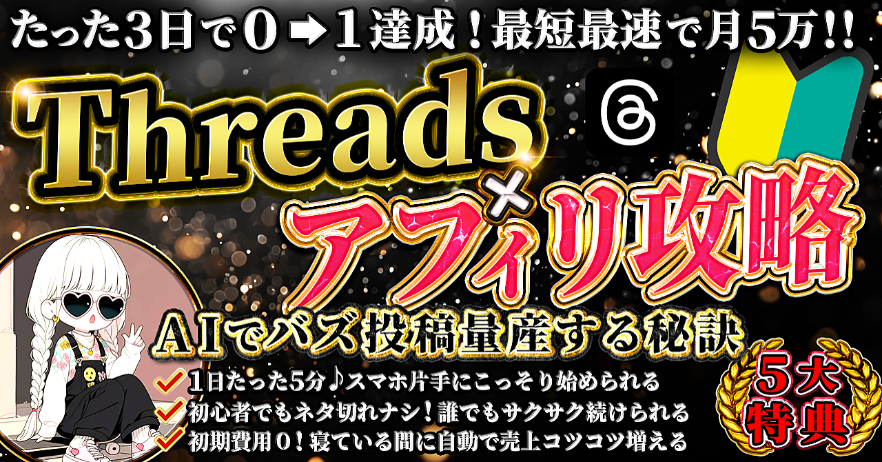 Threads×アフィリエイト 完全攻略 たった3日で0→1達成!最短最速で月5万!!