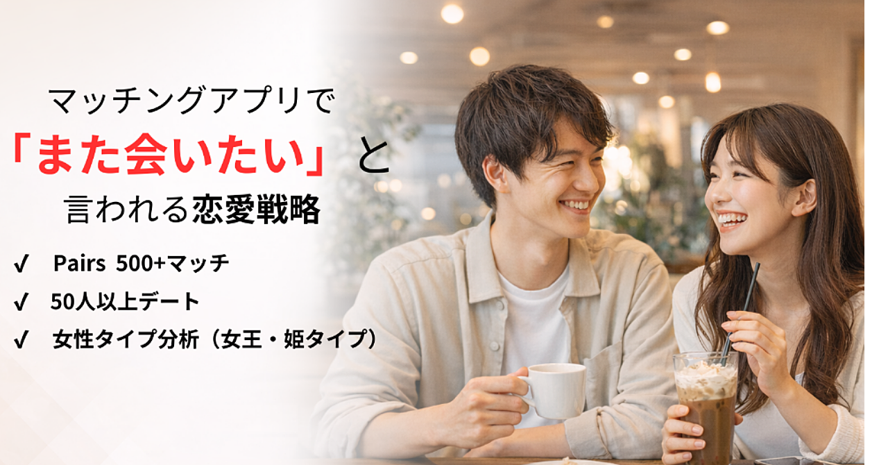 マッチングアプリで 「また会いたい」と言わせる男の恋愛戦略 〜姫タイプ攻略〜【Pairs500いいね経験から作った恋愛戦略】 ※販売数に応じて値上げ予定 (現在が最安価格)