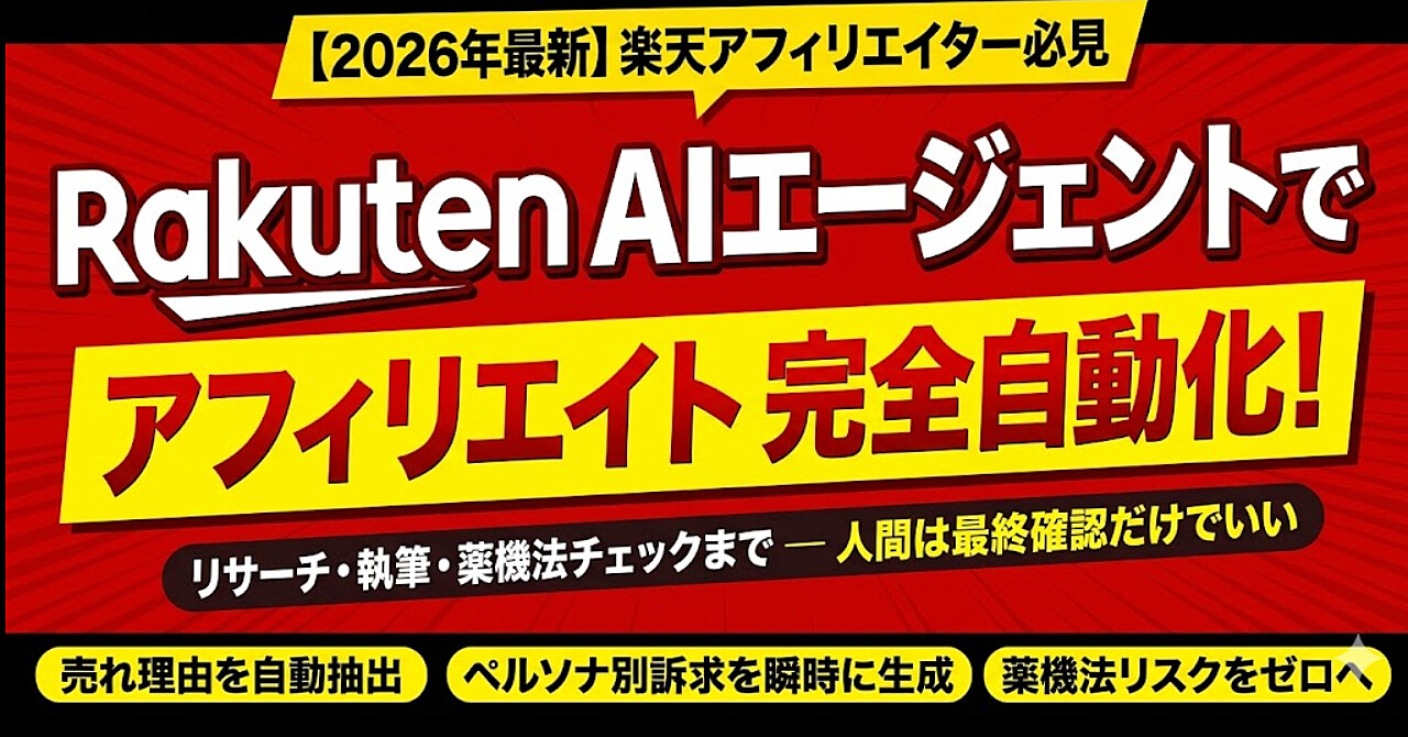 【2026年最新】Rakuten AIエージェントでアフィリエイト記事を完全自動化|リサーチ・執筆・薬機法チェックまで一気通貫