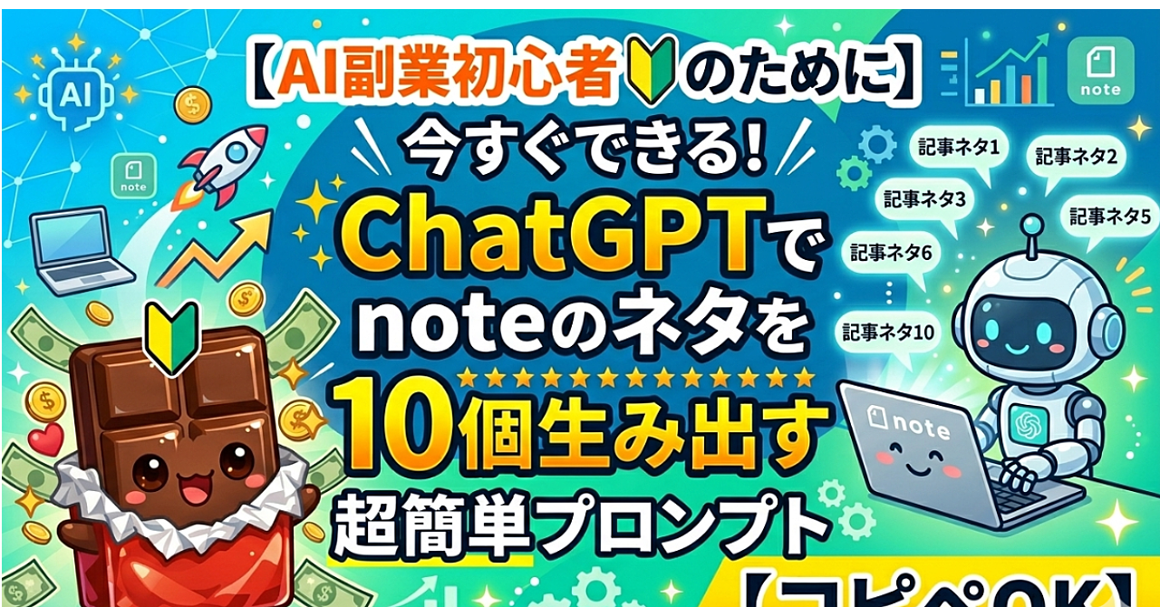 【AI副業初心者🔰のために】今すぐできる!ChatGPTでnoteのネタを10個生み出す超簡単プロンプト