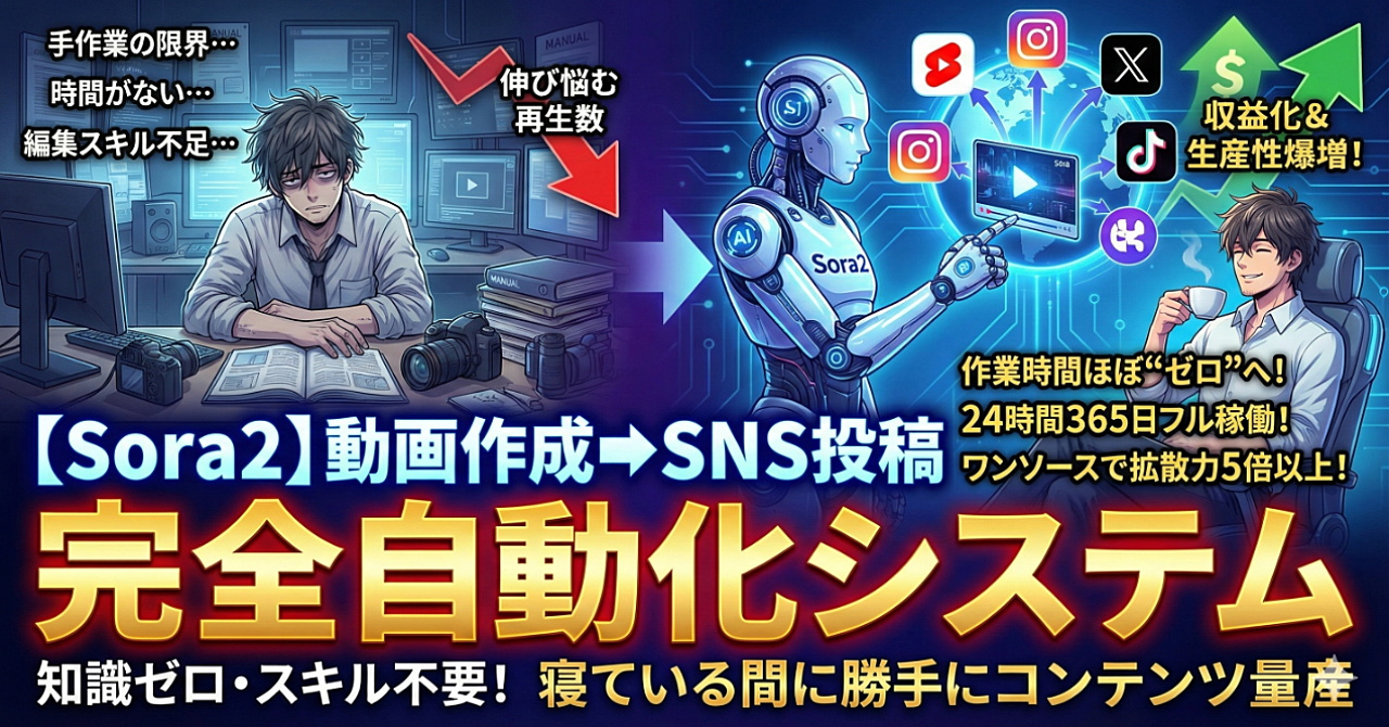 【AI×自動化】Sora2で動画作成からSNS投稿までを完全自動化!知識ゼロから始める次世代のコンテンツ戦略