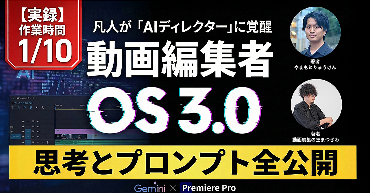 【実録】作業時間1/10。凡人編集者が「AIディレクター」に覚醒する『動画編集者OS 3.0』 ~Gemini×Premiere Proで「労働」を消滅させる思考とプロンプト全公開~