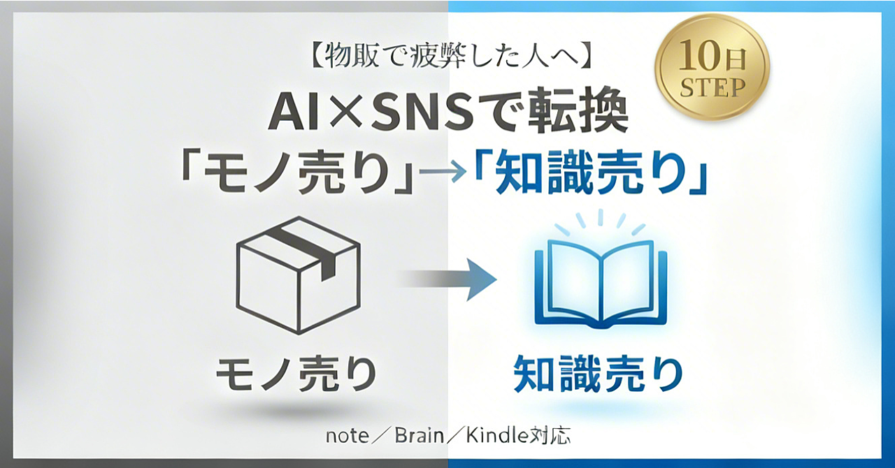 【物販で疲弊した方へ】AI×SNSで「モノ売り」から「知識売り」へ転換する10日間ステップ講座|note/Brain/Kindle対応