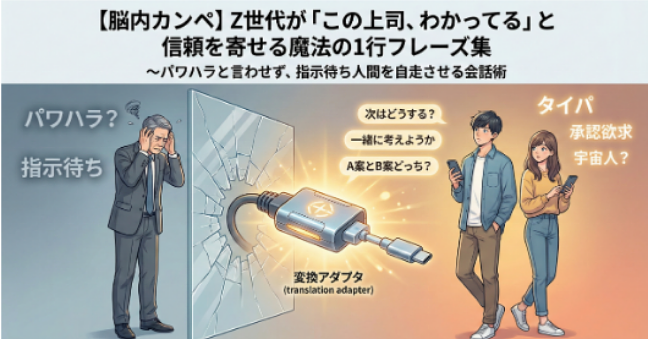 【脳内カンペ】Z世代が「この上司、わかってる」と信頼を寄せる魔法の1行フレーズ集~パワハラと言わせず、指示待ち人間を自走させる会話術