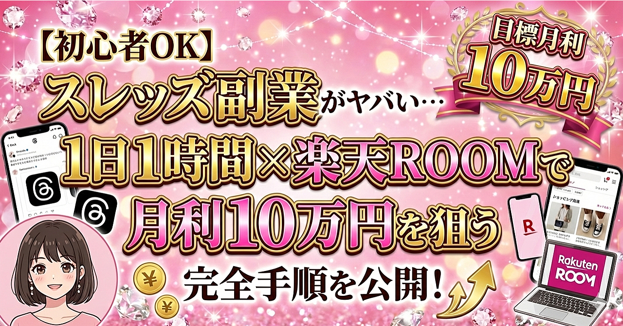 【初心者OK詳細版】【55000文字以上】スレッズ副業がヤバい…1日1時間×楽天ROOMで月利10万円を狙う完全手順
