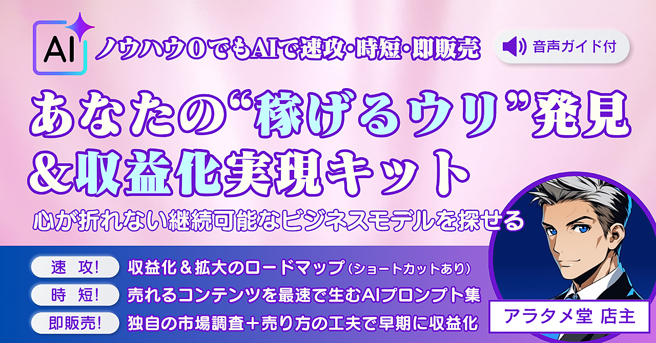 【AIで速攻・時短・即販売】あなたの「稼げるウリ」発掘&収益化ブースターキット