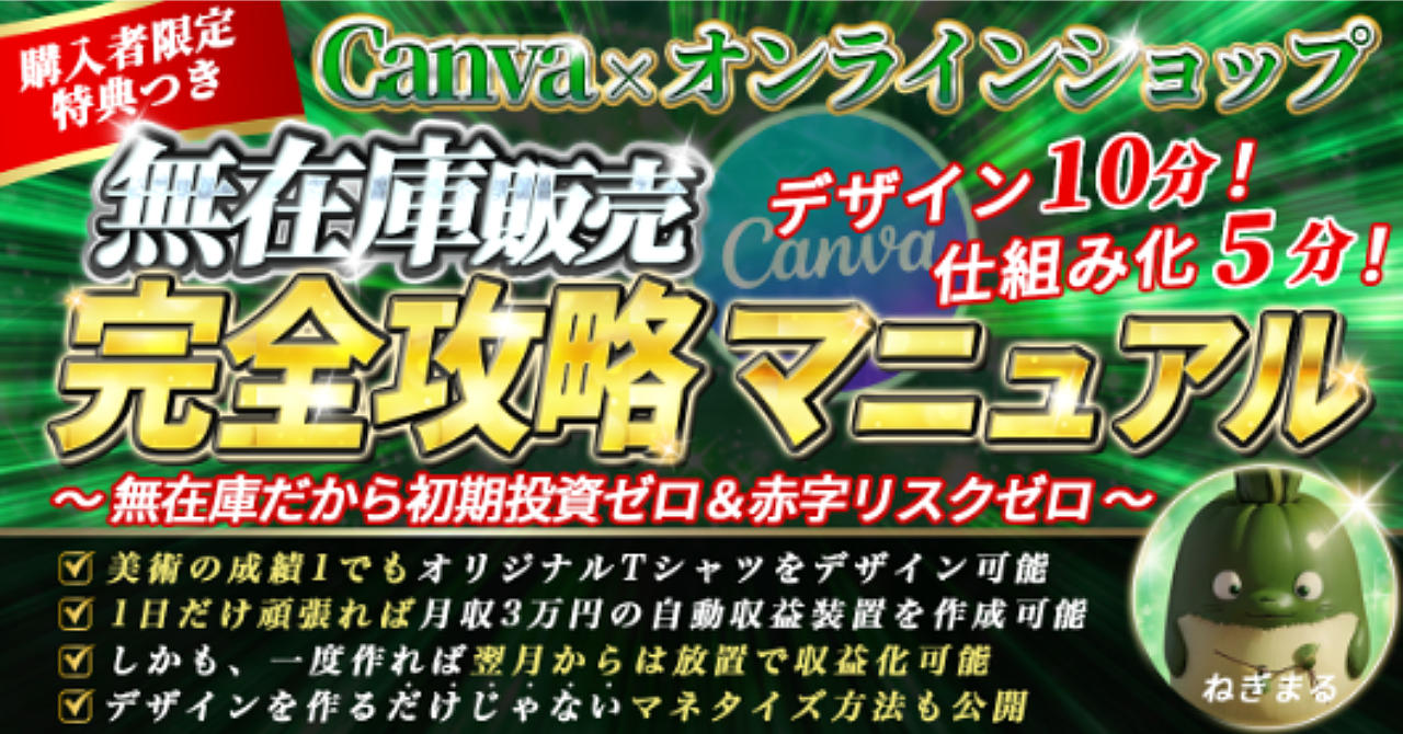 【Canva×オンラインショップ】 10分で作ったデザインを5分で仕組み化する無在庫販売完全攻略マニュアル ~リスクを取らずに利益を得る方法をお伝えします~