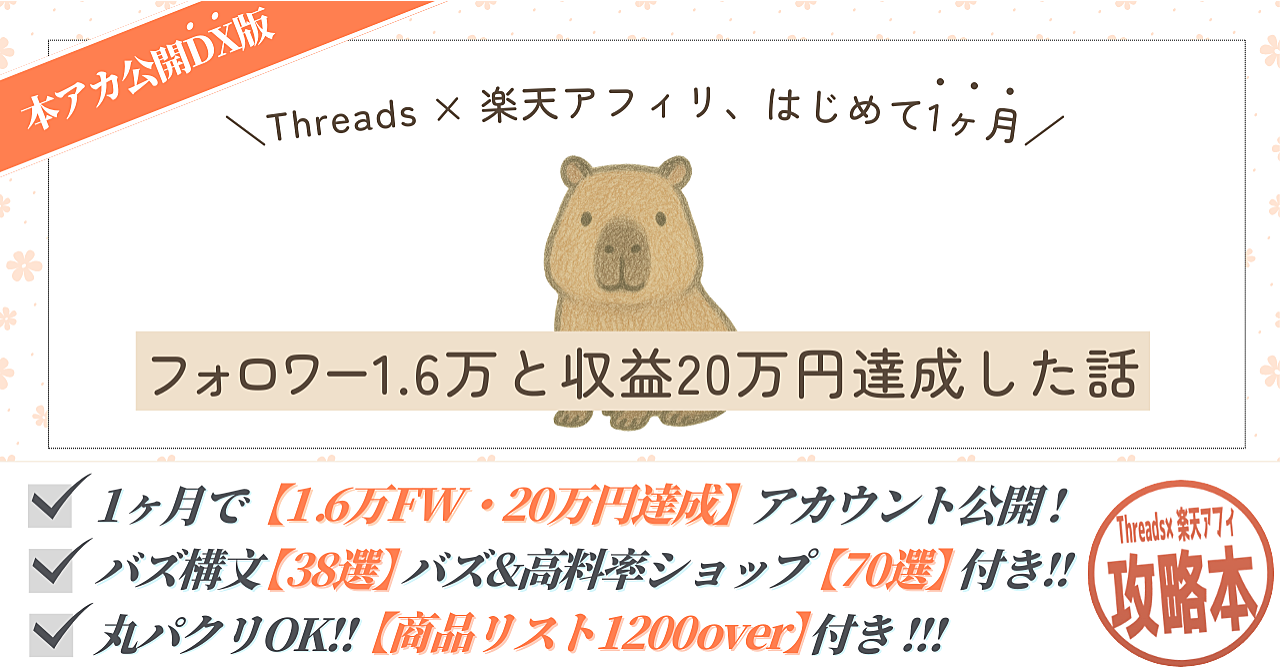 【Threads×楽天アフィリエイトの攻略本】「これならできるかも」ではじめた楽天アフィリ、1ヶ月で20万円になった話。