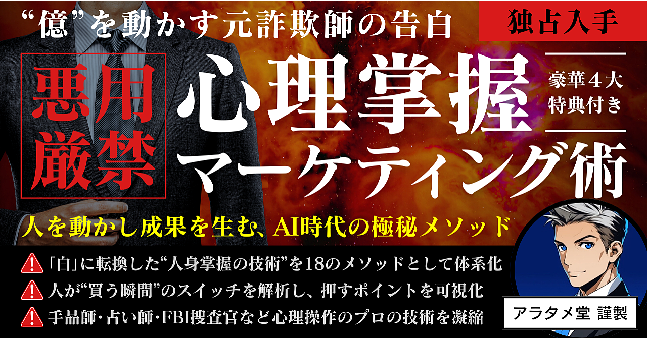 【1/24値上げ】“億”を動かす元詐欺師の告白 悪用厳禁「心理掌握マーケティング術」〜人を動かし成果を生む、AI時代の極秘メソッド〜(2026年2月7日までの期間限定販売)