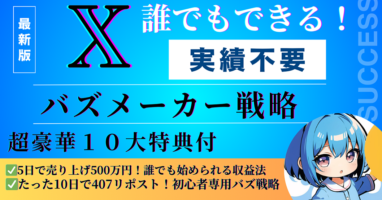 【10大特典付き】実績不要!誰でもできる𝕏バズメーカー収益化メソッド