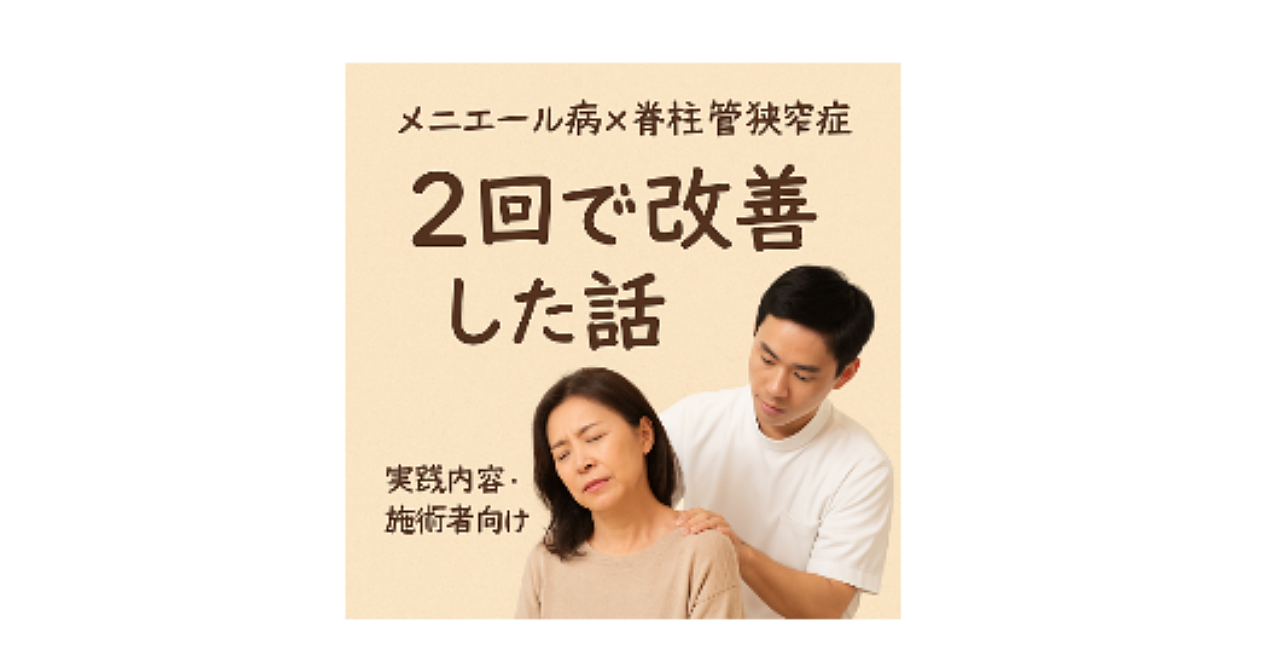 メニエール・脊柱管狭窄症の症状を2回で改善しちゃった話!!の、セラピスト・施術者の方向けに解説。実践内容。
