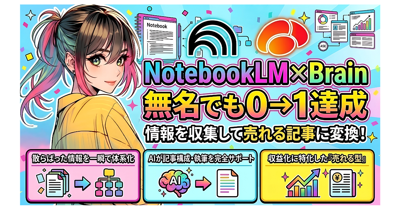 【NotebookLM×Brain】無名でも0→1を達成した方法|SNS集客に頼らず売れる記事を作る仕組み