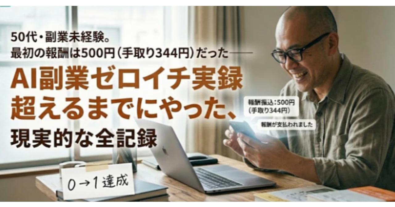 50代・副業未経験。最初の報酬は500円(手取り344円)だった──AI副業でゼロイチを超えるまでにやった、現実的な全記録