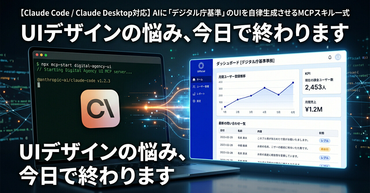 【Claude Code / Claude Desktop対応】AIに「デジタル庁基準」のUIを自律生成させるMCPスキル一式。もう管理画面のデザインで消耗しない。
