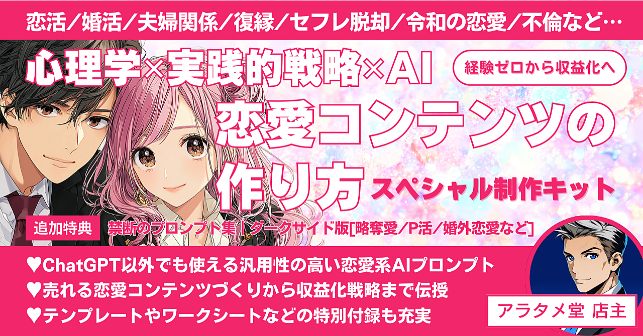 恋愛コンテンツの作り方:心理学的洞察✕実践的戦略✕AIによる恋愛コンテンツクリエイター向け制作キット