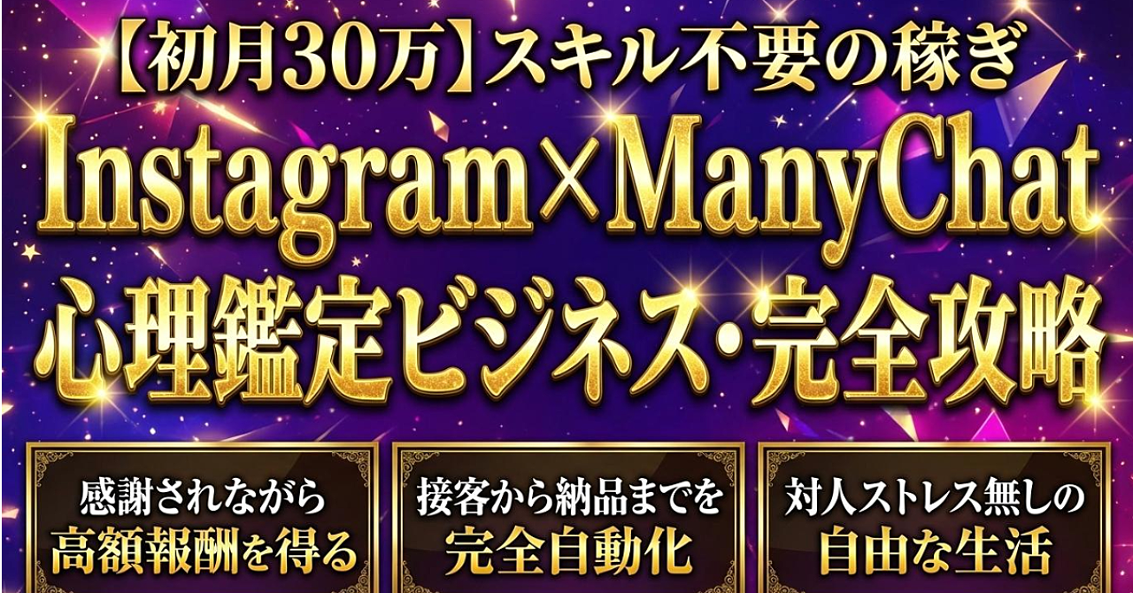 【初月30万】スキル不要の稼ぎ Instagram x ManyChat 心理鑑定ビジネス・完全攻略
