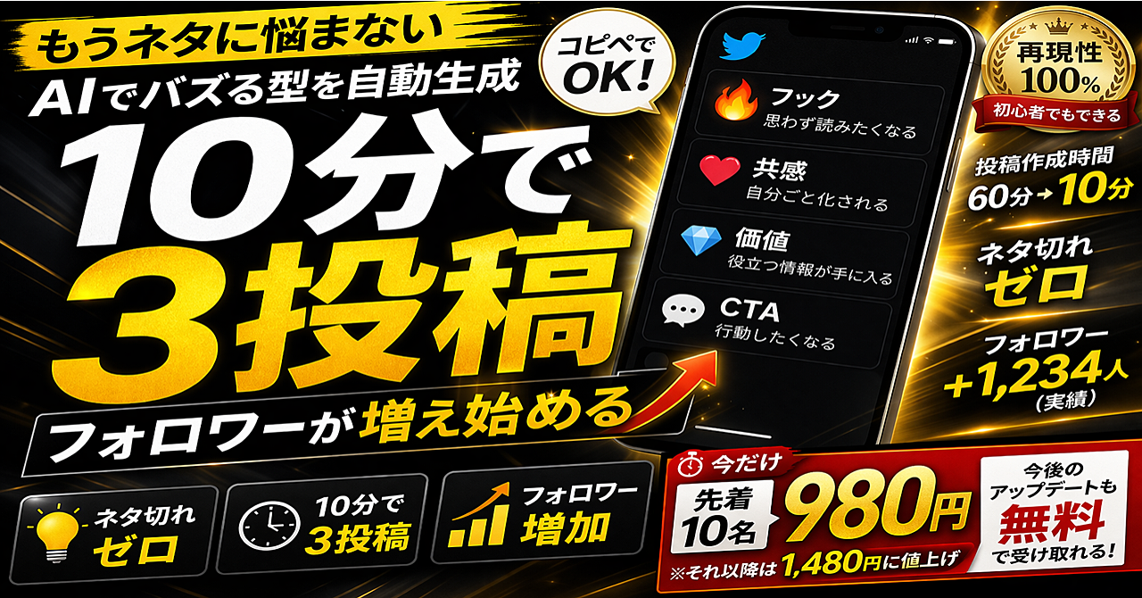 【10分で3投稿】フォロワーが増え始めた“バズる型”をAIで自動生成する方法(完全版)