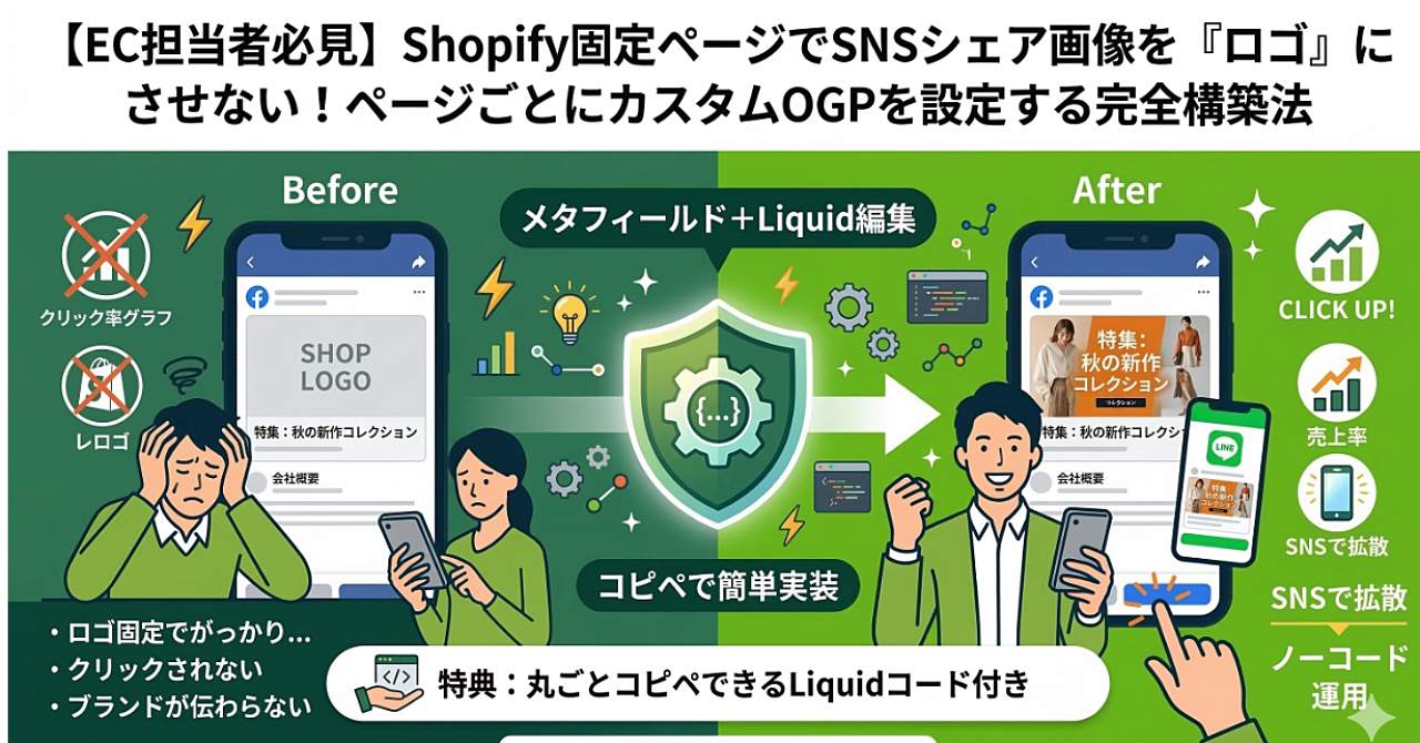 【EC担当者必見】Shopify固定ページでSNSシェア画像を『ロゴ』にさせない!ページごとにカスタムOGPを設定する完全構築法