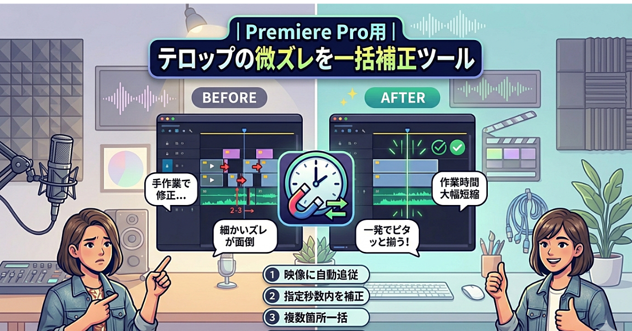 Premiere Proでテロップがズレる問題、まだ手で直してますか?