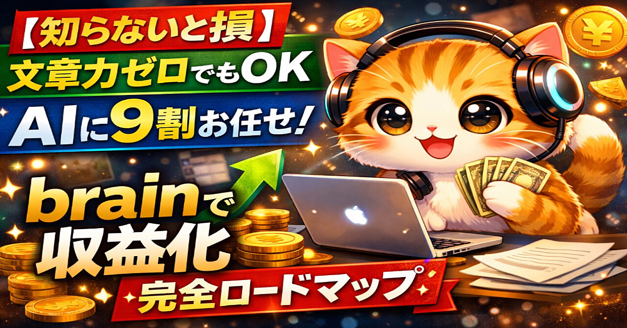 【知らないと損】文章力ゼロでもOK|AIに9割任せてbrainで収益化する完全ロードマップ