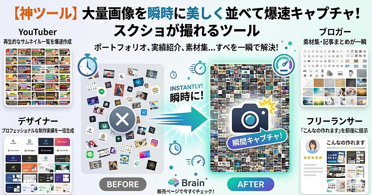 大量の画像を一瞬でぎっしり並べてスクショが瞬間で撮れるツール|実績紹介・ポートフォリオに