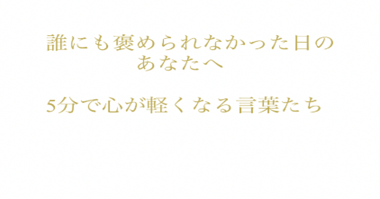 誰にも褒められなかった日の、あなたへ。 〜5分で心が少し軽くなる言葉たち〜