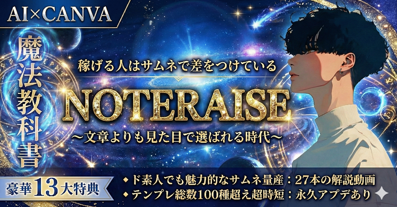 【ド素人OK】AI×CANVAで映えるサムネを量産できる魔法の教科書【動画解説付き:NOTERAISE】