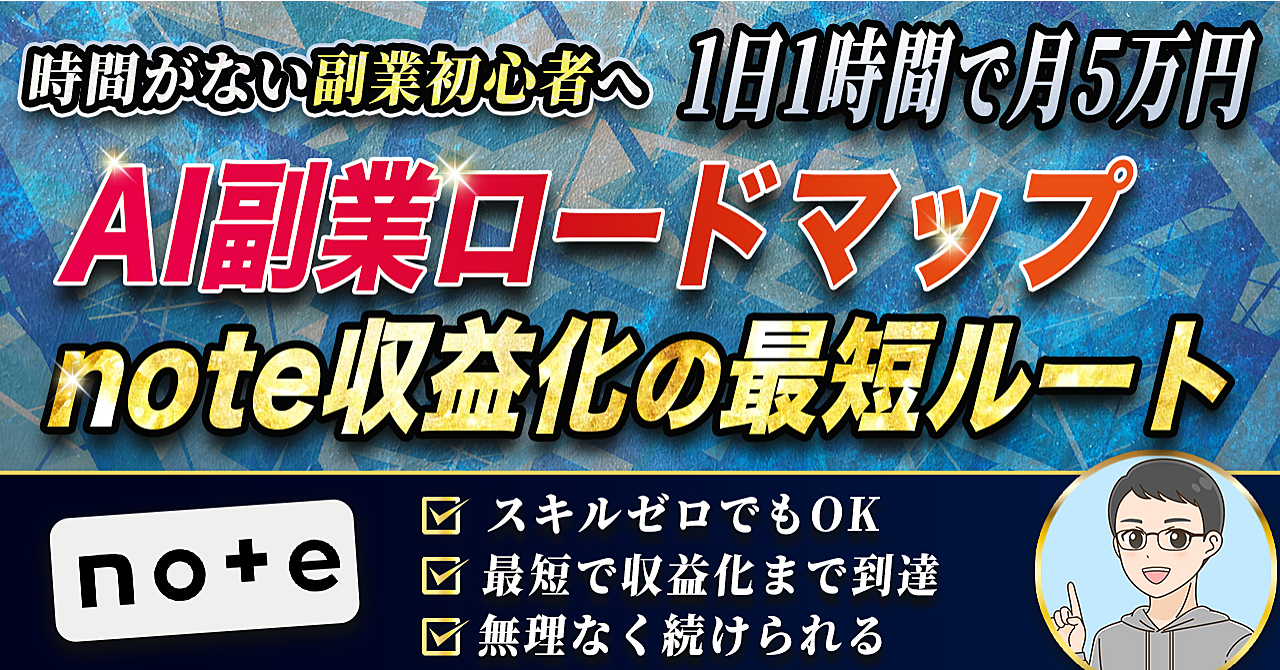 【何を書けばいいか分からない人へ】AI×note副業 完全攻略|1日1時間で月5万円を目指す全手順