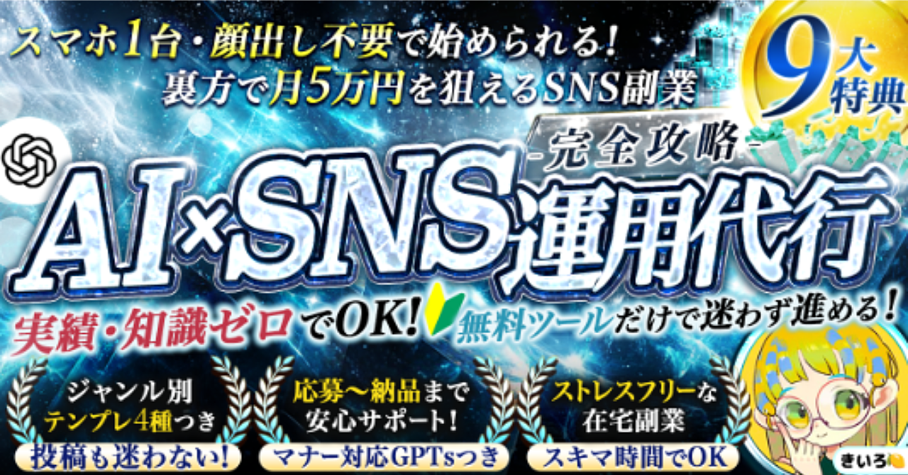 【GPTs&テンプレ20枚超】AI×インスタ特化型SNS運用代行完全攻略【初心者でも裏方で月5万】