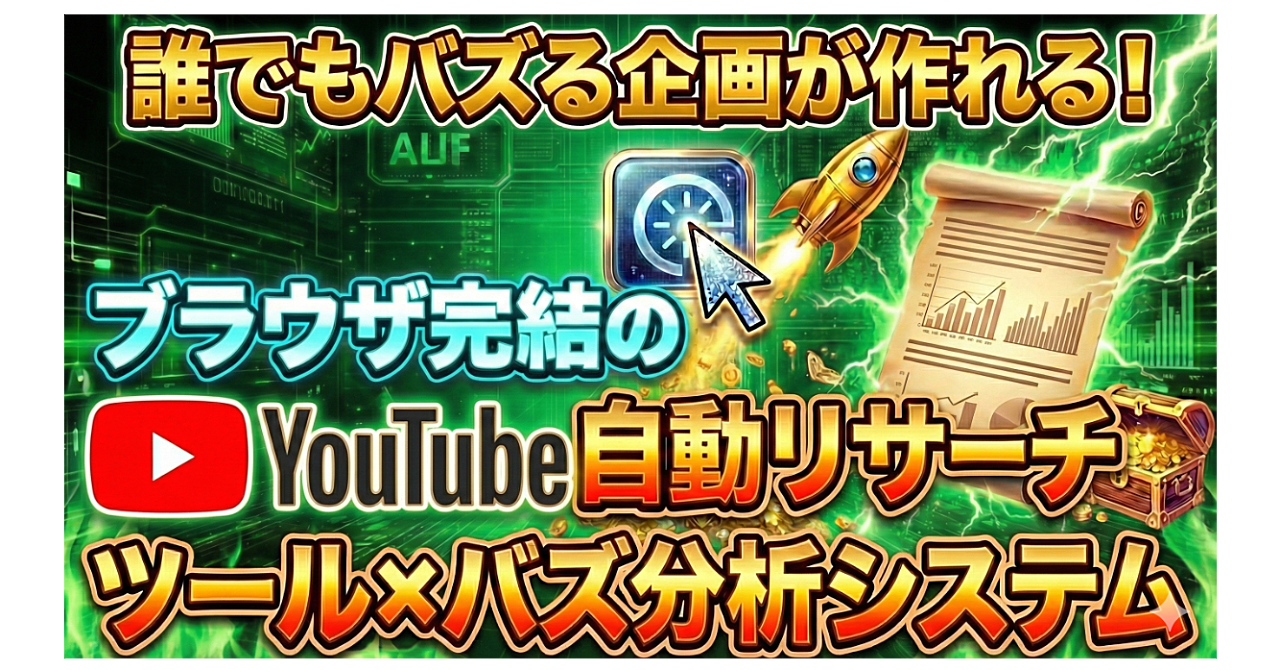 誰でもバズる企画が作れる!ブラウザ完結のYouTube自動リサーチツール×バズ分析システム