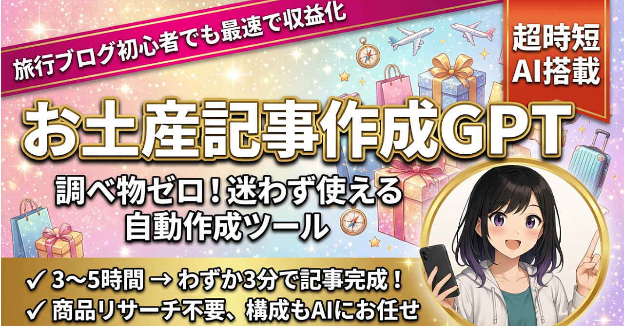 旅行ブログの収益化UPテンプレート! お土産記事を「調べず・迷わず・そのまま使える記事」にする時短GPT