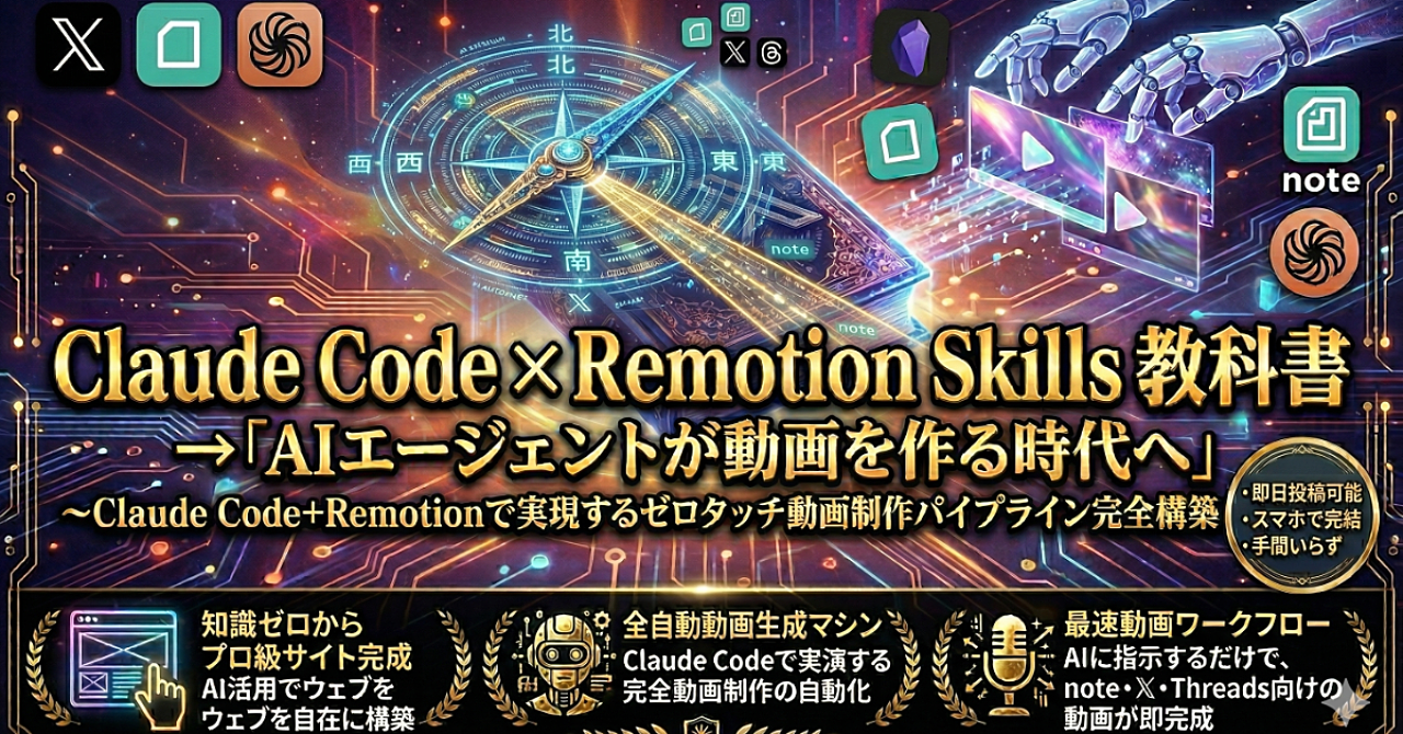 Claude Code × Remotion Skills 教科書 →「AIエージェントが動画を作る時代へ」〜Claude Code+Remotionで実現するゼロタッチ動画制作パイプライン完全構築