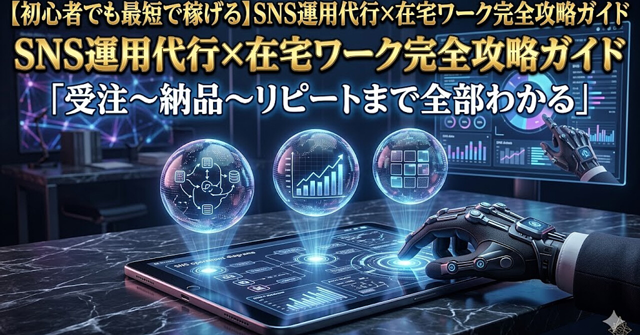 初心者でも最短で稼げるSNS運用代行×在宅ワーク完全攻略ガイド →「受注〜納品〜リピートまで全部わかる」未経験から月5件のSNS運用案件を在宅で回すための実務マニュアル