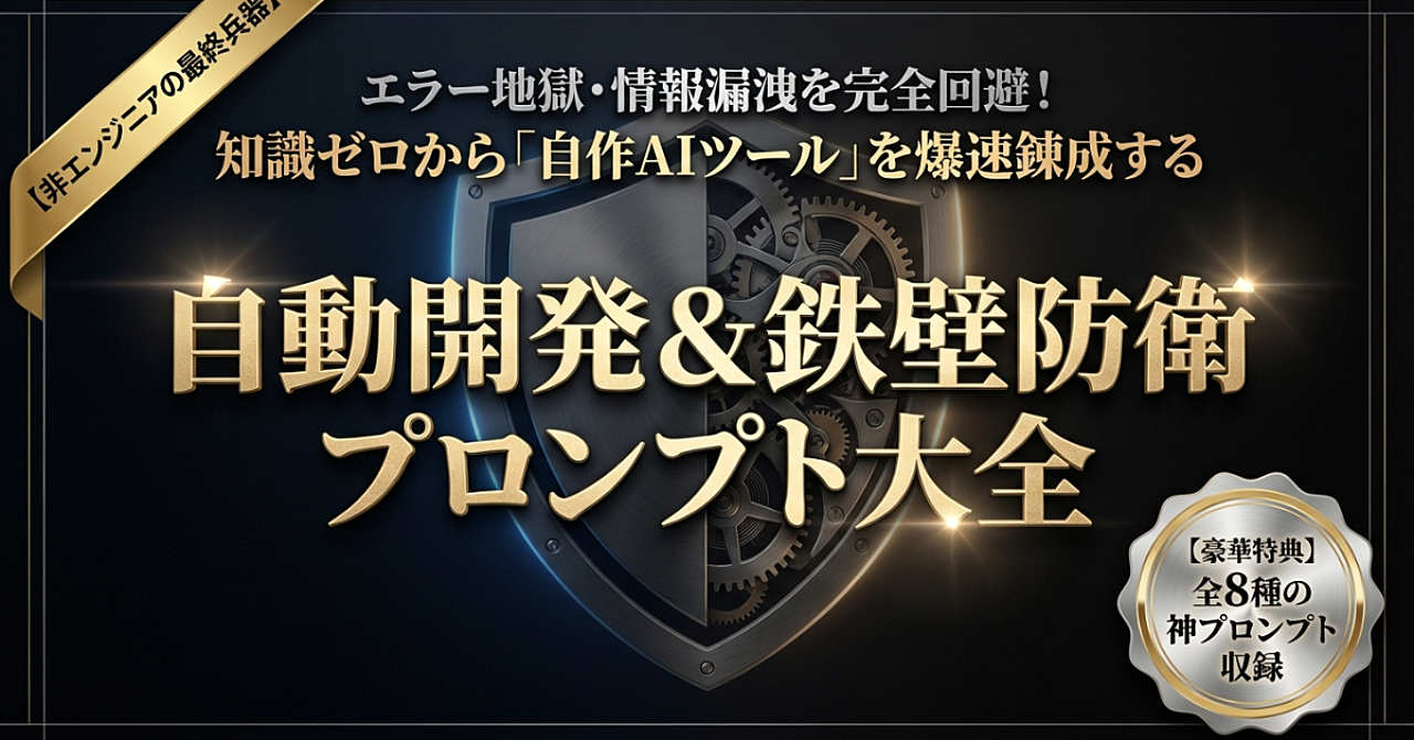 【非エンジニアの最終兵器】エラー地獄・情報漏洩を完全回避!知識ゼロから「自作AIツール」を爆速錬成する『自動開発&鉄壁防衛プロンプト大全』【全8種の神プロンプト収録】