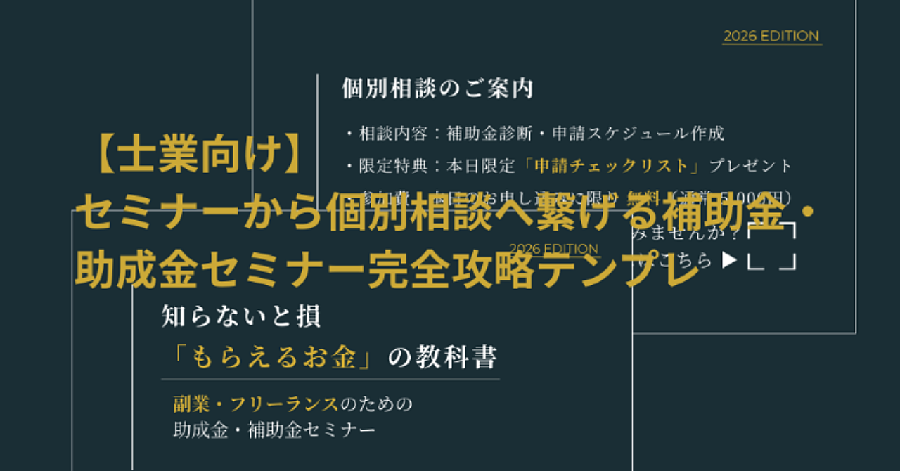 【Canvaテンプレ28枚付き】補助金・助成金セミナー完全攻略パック|集客から個別相談までこれ1つで完結【行政書士・税理士・中小企業診断士・IT導入支援事業者(ベンダー)必見】
