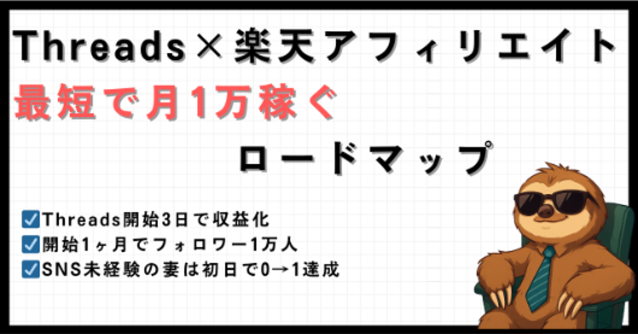 【スマホだけでできる】Threads×楽天アフィリエイトの始め方と最短で月1万円稼ぐロードマップ
