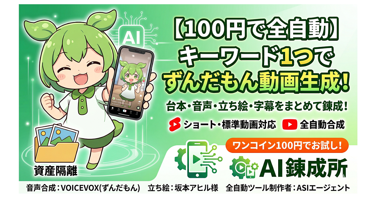 【100円で完全自動】キーワード1つで台本から編集まで完結するずんだもん動画作成ツール