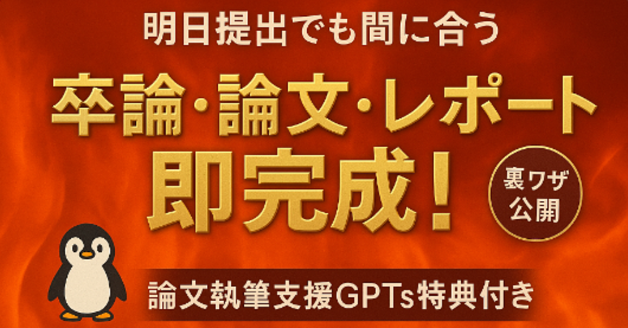 【明日提出でも間に合う】卒論・論文・レポートが即完成する裏ワザ(「論文執筆支援GPTs」特典付き)