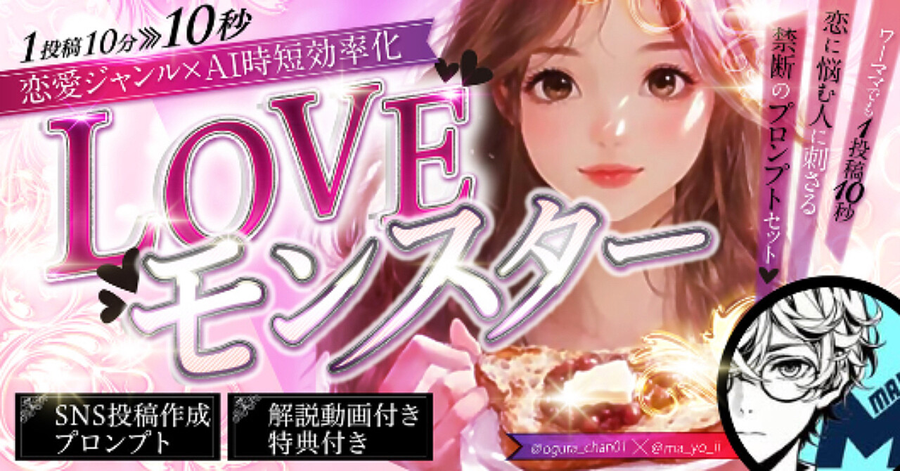 【LOVEモンスター】ワーママでも1投稿10秒♡ 恋に悩む人に刺さる禁断のプロンプトセット