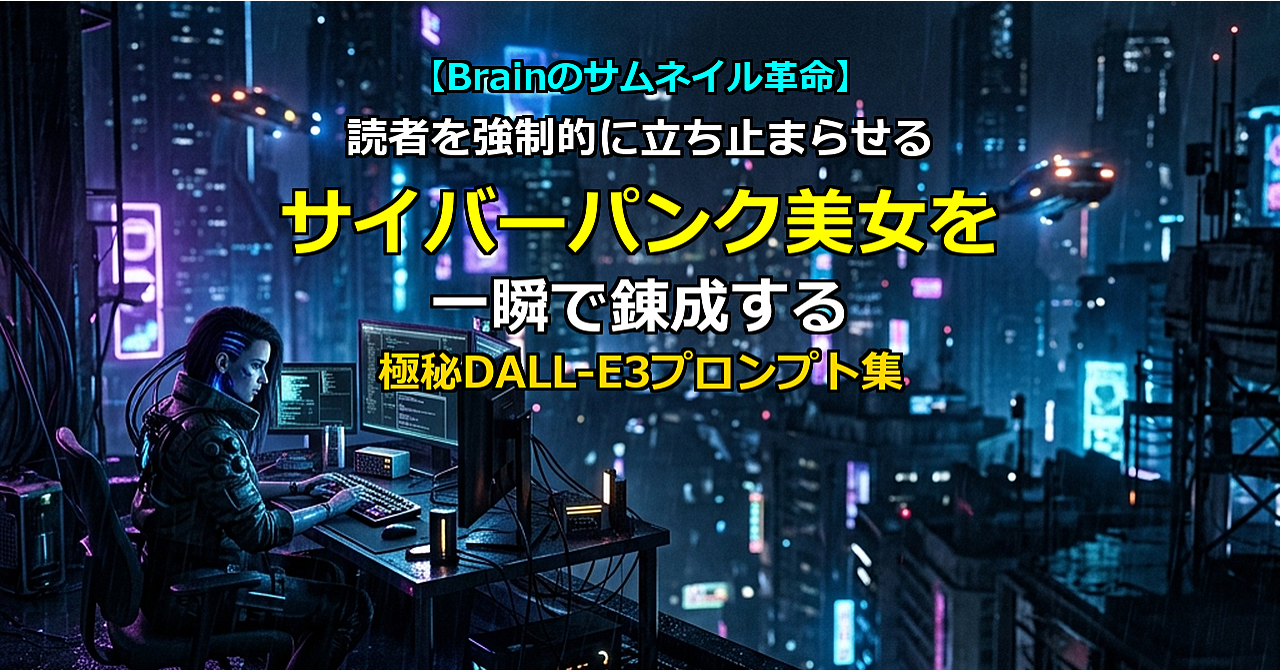 【Brainのサムネイル革命】読者を強制的に立ち止まらせる「サイバーパンク美女」を一瞬で錬成する極秘のDALL-E3プロンプト集(高単価商品特化)