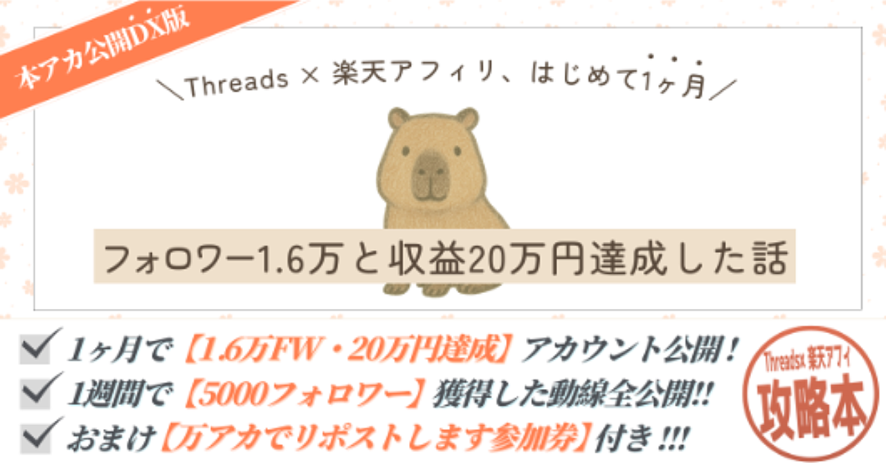 【Threads×楽天アフィリエイトの攻略本】「これならできるかも」ではじめた楽天アフィリ、1ヶ月で20万円になった話。